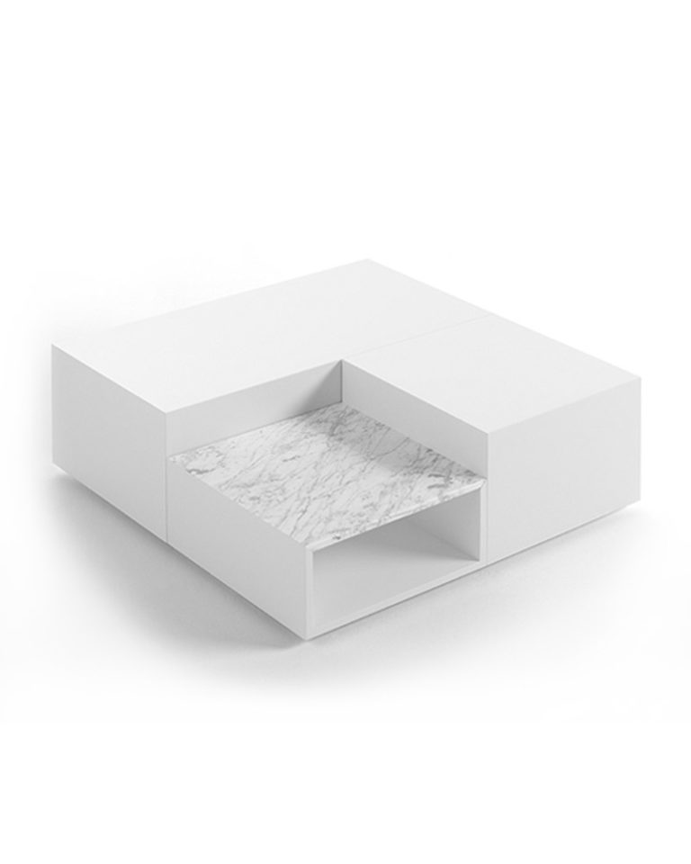 A modular table system with a huge variety of finishes. It combines various materials and sizes. This enhances its adaptability to central room areas, both at home or contract spaces.