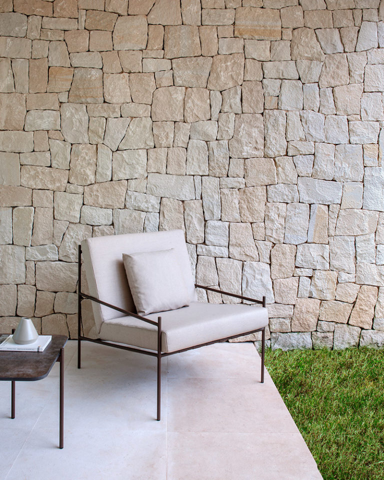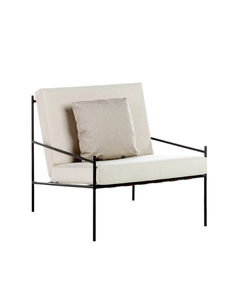 A lightweight design that plays with the crossing of lines of a powder-coated aluminum structure, creating strategic angles and simple geometric shapes. It is characterised by a base and back of stretched ribbons that contribute to the unusual personality of the armchair, while serving to support the high resistance cushion in polyurethane.