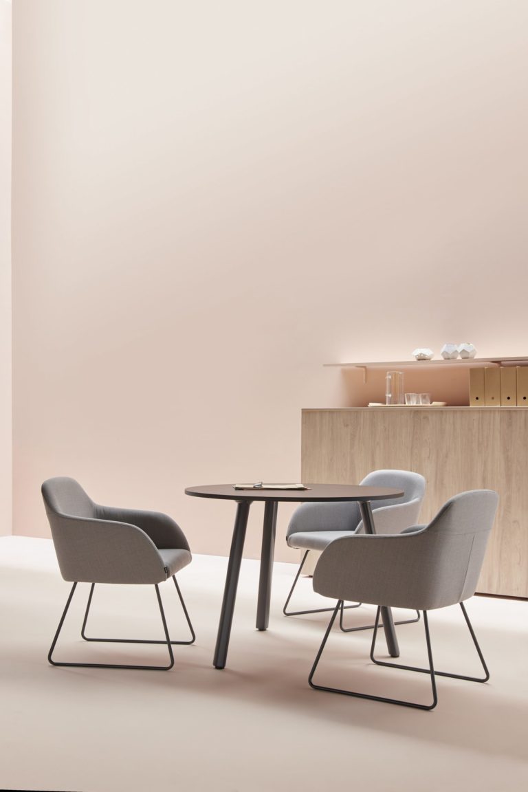 This chair is Francesc Rifé’s first collaboration with the Akaba company and represents for both of them the change from aseptic work environments towards more friendly and affectionate spaces. A clever mixture of comfort and ergonomic design makes it a logical choice also for the home. Available in aluminum legs, the upholstery adds value to the piece in terms of design, suture, and finishing.