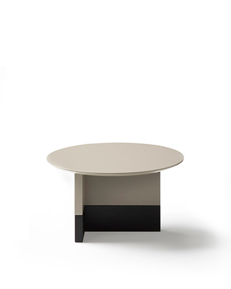 Collection of coffee, occasional and bedside tables comprising circular top made in black or white marble, MDF in lacquer or oak veneer with structure in oak or lacquer. Slate micro-textured lacquer base.