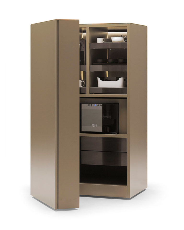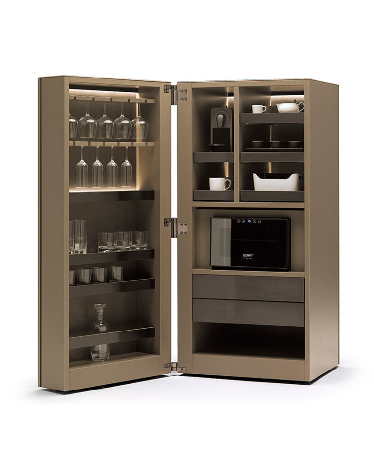 El mueble OK es una interpretación minimalista de un espacio de cocina. Incluye iluminación LED, cajones con sistema de apertura push, bandejas y estantes para botellas y vasos. Para electrificarlo e integrar electrodomésticos de cocina como cafetera Nespresso, nevera o microondas (electrodomésticos NO INCLUIDOS) contactar con info@rihouse.shop