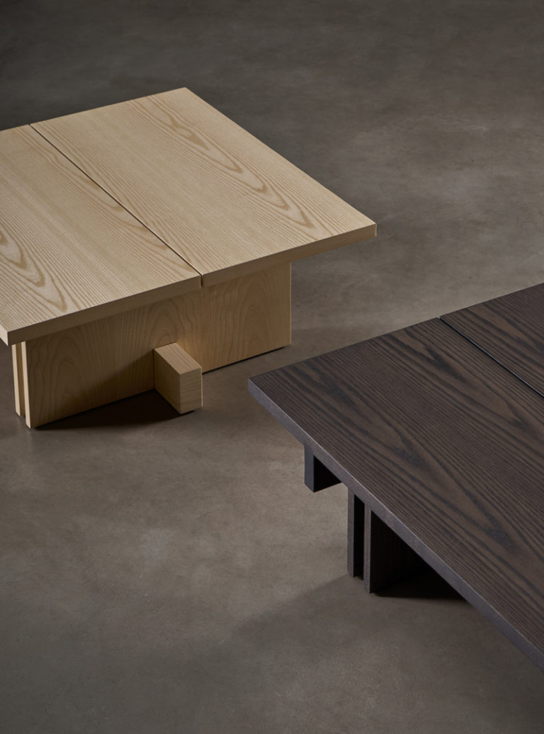 Con referencias tanto al pasado como al presente, Rak puede interpretarse como un relato arquitectónico racionalista. Los ángulos duros y la superposición e intersección de tablas de madera de fresno, natural o teñido, definen estas mesas de centro, auxiliares y consola que conforman la colección. Se trata de un diseño cálido y acogedor que, a pesar de su sencillez, agregará personalidad a cualquier interior.