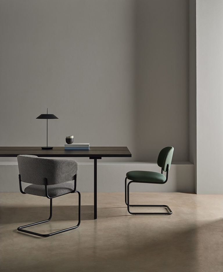 Las versiones Wood y Metal de la familia RC incorporan nuevos acabados que apelan directamente al tacto. El contraste entre la estructura minimalista y la expresividad de los nuevos tejidos, marcados por pliegues y texturas, ofrece una sensación más envolvente sin renunciar a la simplicidad del diseño.