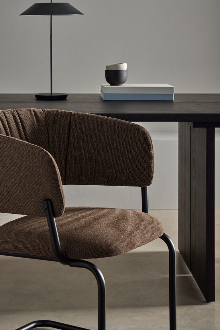 Las versiones Wood y Metal de la familia RC incorporan nuevos acabados que apelan directamente al tacto. El contraste entre la estructura minimalista y la expresividad de los nuevos tejidos, marcados por pliegues y texturas, ofrece una sensación más envolvente sin renunciar a la simplicidad del diseño.