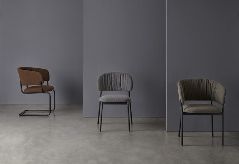 Las versiones Wood y Metal de la familia RC incorporan nuevos acabados que apelan directamente al tacto. El contraste entre la estructura minimalista y la expresividad de los nuevos tejidos, marcados por pliegues y texturas, ofrece una sensación más envolvente sin renunciar a la simplicidad del diseño.