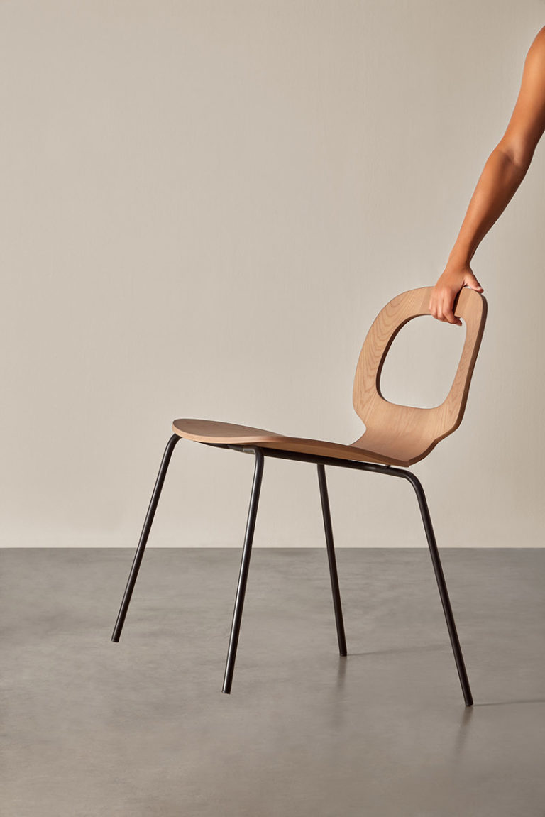 Una nueva colección de sillas que nace para ser apilable y crece hasta ganar presencia y personalidad. Halo es una pieza depurada cuyo cuerpo en madera se puede adaptar a diferentes tipos de patas. La identidad ligera de cualquiera de sus versiones se acentúa con una original opción de respaldo en madera perforada siguiendo la misma forma ovalada del contorno. El diseño, que simplifica las curvas naturales del cuerpo humano, es testigo de la estética del estudio de Francesc Rifé, marcada desde siempre por el gusto por la proporción y el valor de los detalles.