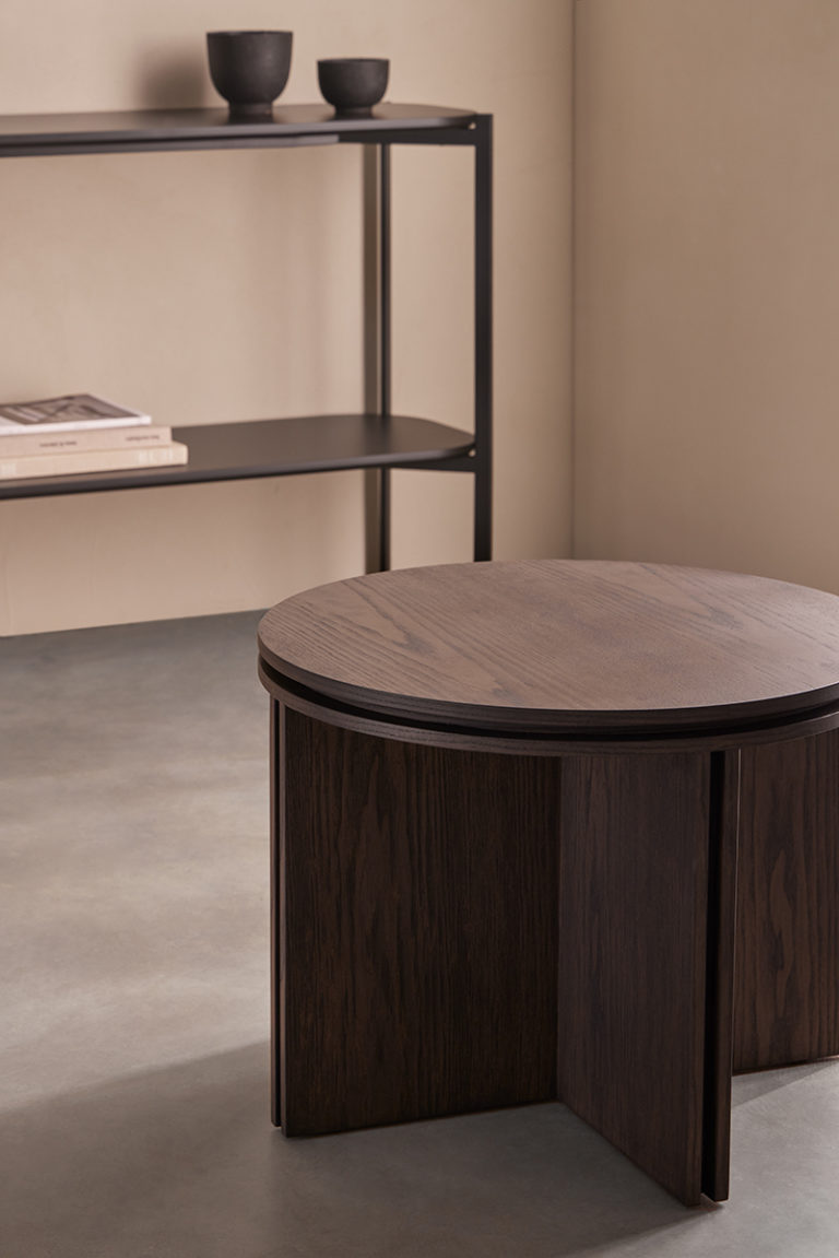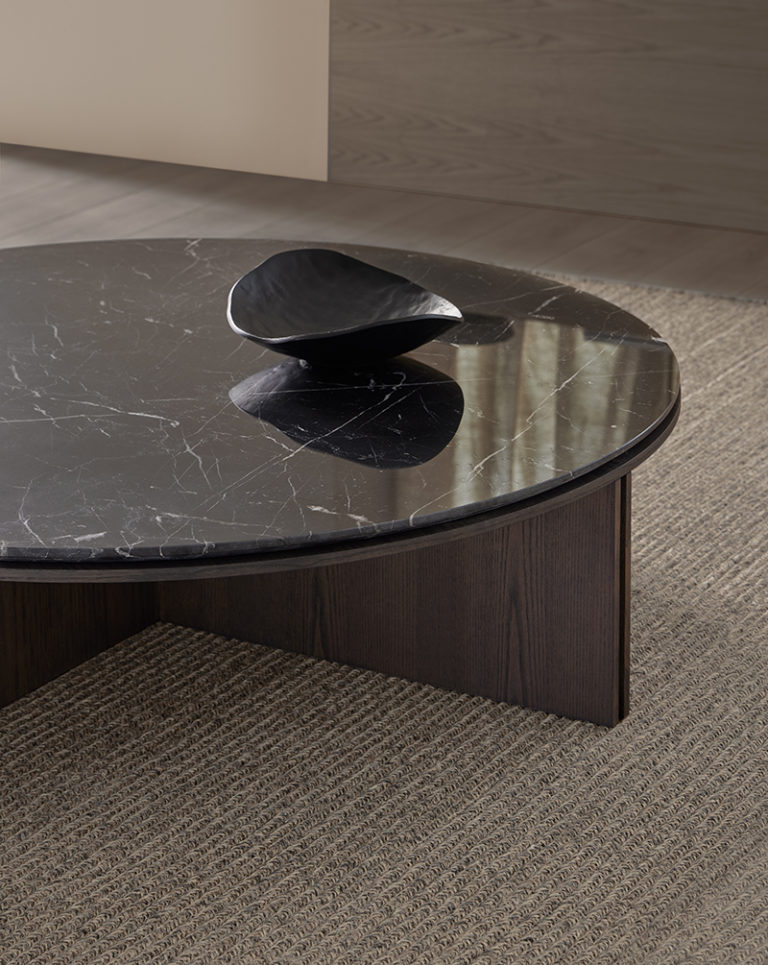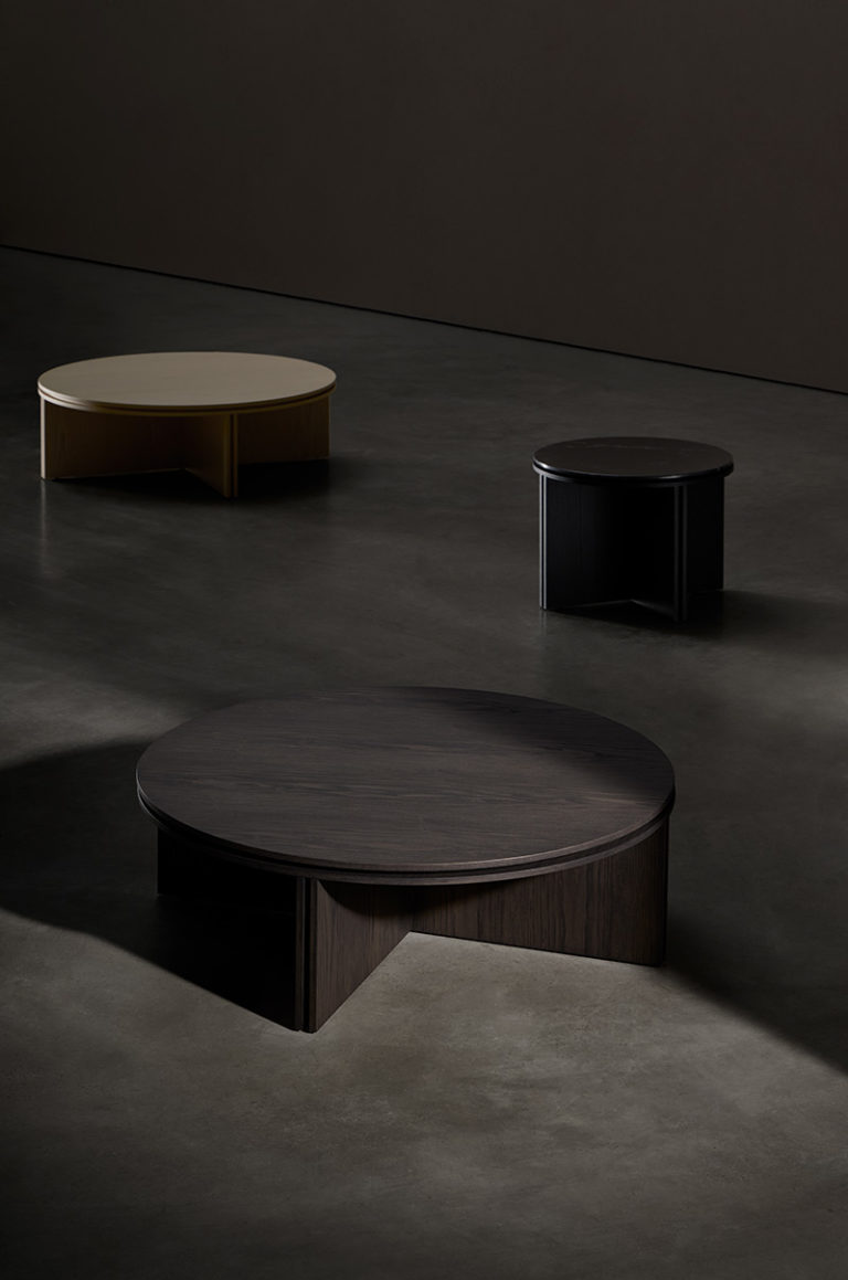 A través de la simplicidad que define los trabajos del estudio de Francesc Rifé se construye el discurso geométrico de esta nueva propuesta de mesas auxiliares y de centro. Un diseño depurado, marcado por el detalle de la doble línea, que crea una relación muy especial entre las patas y el sobre de madera, mármol o cerámica, disponible en forma circular, rectangular o cuadrada. La colección se presenta en dos alturas que hacen que puedan funcionar bien tanto en grupo como en solitario.