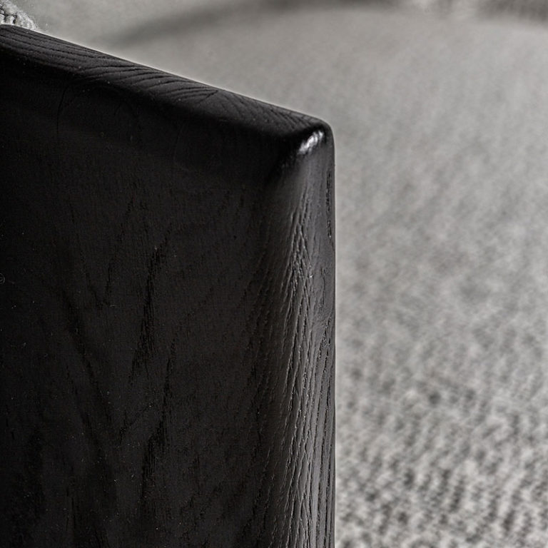 Las mesas de comedor y de centro completan la colección con la misma narrativa en madera de roble, pero con la opción de sobre en piedra. Una de las mesas auxiliares, en cambio, se distingue por su ingenioso sobre giratorio que se abre para extender el espacio funcional.