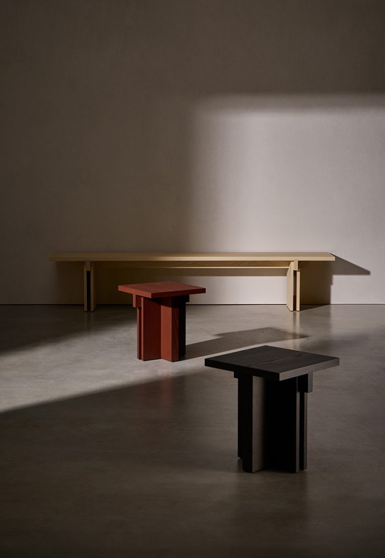 Con referencias tanto al pasado como al presente, Rak puede interpretarse como un relato arquitectónico racionalista. Los ángulos duros y la superposición e intersección de tablas de madera de fresno, natural o teñido, definen estas mesas de centro, auxiliares y consola que conforman la colección. Se trata de un diseño cálido y acogedor que, a pesar de su sencillez, agregará personalidad a cualquier interior.