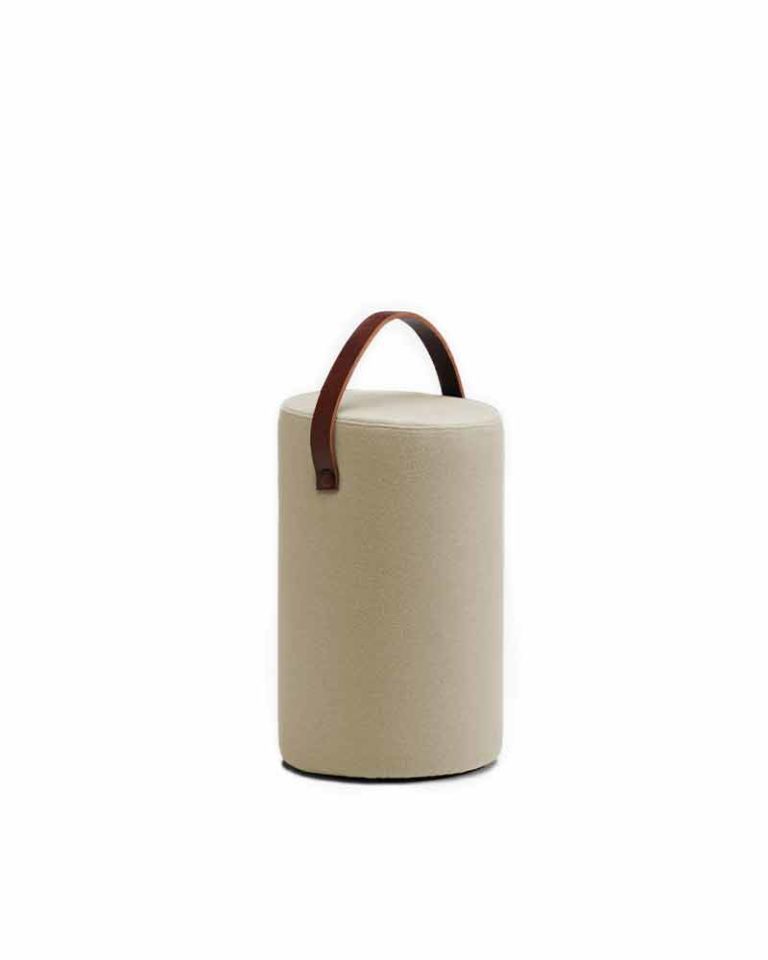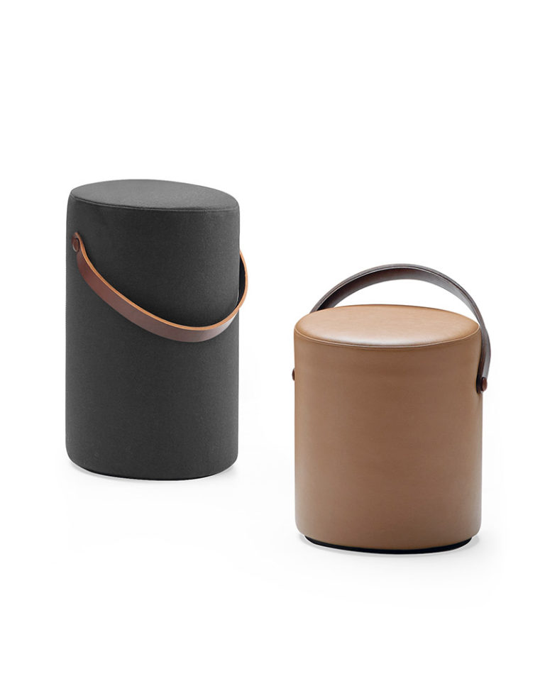 Con una simplicidad geométrica intrínsecamente relacionada a nuestros diseños, este taburete cilíndrico nace como asiento complementario cargado de practicidad. A un cuerpo acolchado se une el asa de piel que facilita su movilidad, además de contribuir a la personalidad estética de la pieza junto con elección de la altura y el color. Una ligera inclinación en la superficie del asiento proporciona el confort y estabilidad necesarios.